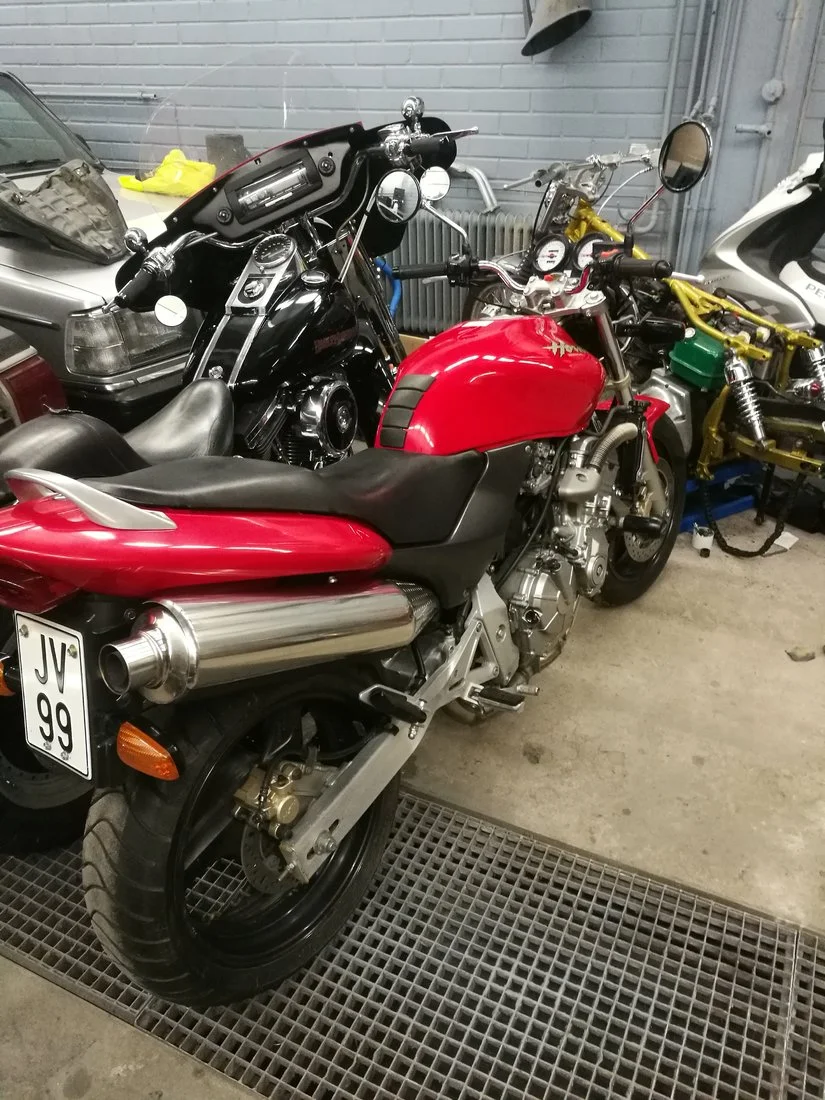 Mulla oli Honda CB, tosin 500, vuosimallia 2001. Siinä ei ollut koskaa mitään vikaa ja todella helppo ajaa, se kääntyi vaikka kuinka pienessä tilassa. Hyvä pyörä.