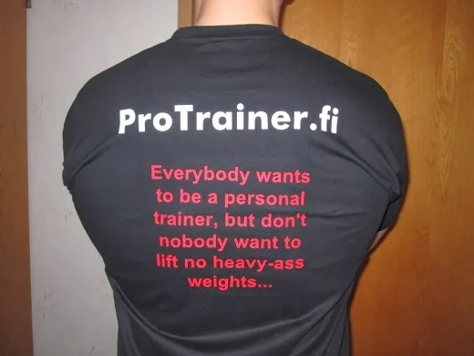 niin paljon näkee alalla sellasia toki innokkaita, mutta just ja just salitreenin perusasiat hallitsevia tyyppejä, että hieman risoo joskus. ollaan käyty muutama vuosi salilla ja ihastutaan siihen lifestyleen. sitten käydään joku muutaman kuukauden kurssi ja maksetaan ittensä kipeeksi. sitten kuvitellaan että kaikki on hallussa ja pt sitä pt tätä. multa se ei oo pois, mutta mua ärsyttää ihmisten vedätys. tää lähtee ihan liian usein liikkeelle liiketoiminnasta, eikä oikeesti ihmisten valmentamisesta.