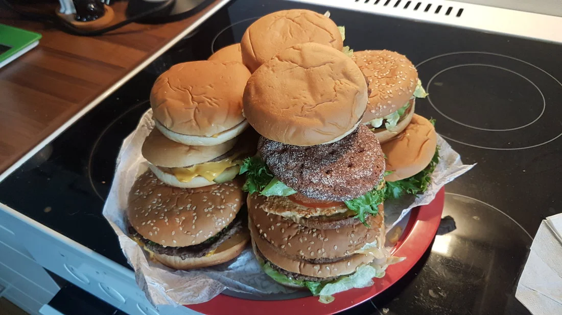 Kokeilin huvikseen cheattipäivänä miten lähtee pystymetsästä tuo Hesen koko menu. Eihän se ilman treeniä uponnut yhdeltä istumalta. Toki vähän harmittaa, että luovutin turhan helposti. Toki vatsa oli suht täynnä, mutta varmaan olisi ainakin toisen jäljellä olevista burgereista pystynyt tunkemaan alas. Alkoi vaan 10. burgerin kohdalla jo maistua aika puulta. 50 minuuttiin kuitenkin 2,2 kg ruokaa ja 6000 kcal, on se enemmän kuin aiemmin olen kertaistumalta mussuttanut.