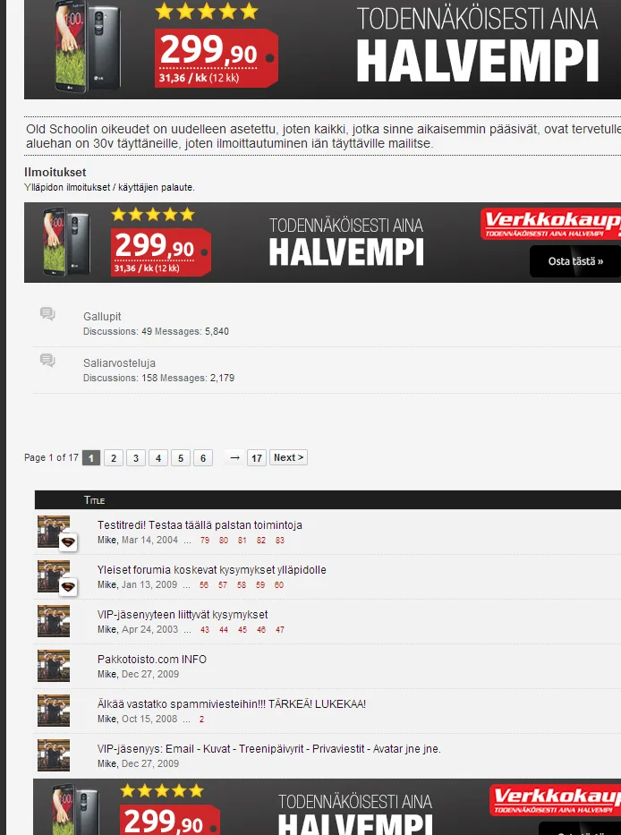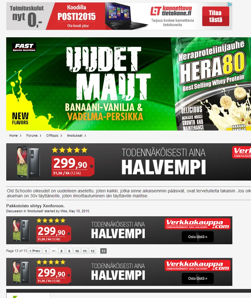 On varmaan ihan tarkoituksella? mut ihmettelin tossa vaan et kun kännyllä selaan pakkista niin näkyy mainoksia mitä taas koneella selatessa ei näy ollenkaan, esim tuo jenkki ja hesarin mainos ei näy koneella selatessa ollenkaan. Eikä ole mitään blokkereita käytössä kun mainokset ei itseä häiritse millään tavalla, pisti vaan silmään moinen. Ja chromella selailen sekä koneella et kännyllä.