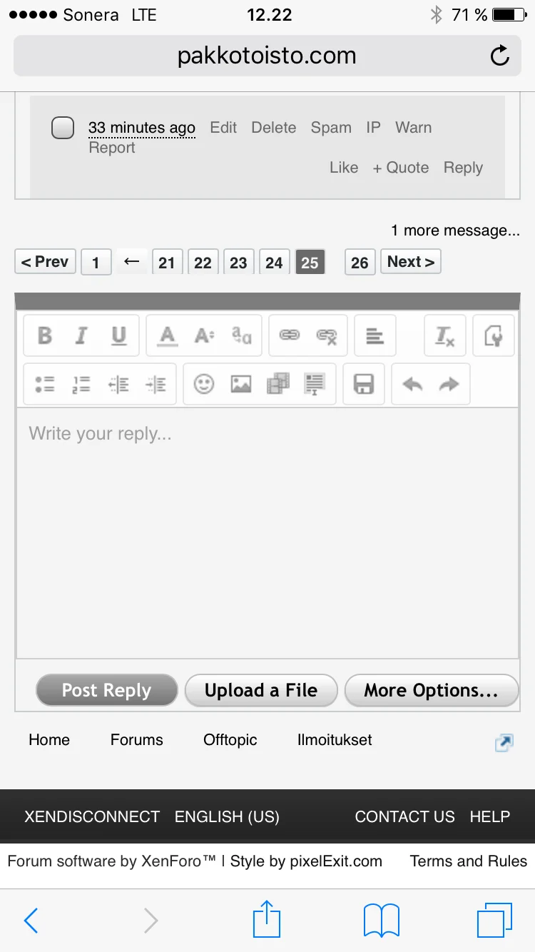 Toinen on tietty se, että antaako Xenforo sun määrittää tuon B -napin olevan strong tägi bold tägin sijaan? Strong täg näkyy ihan boldina.