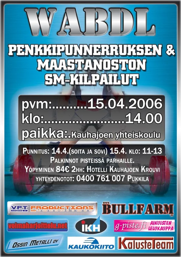 Fitness and Golden Site -kuntosali tarjoaa voimailuyleisölle penkkipunnerrus- ja maastanostokisan 22.4.2006 kello 14.00 alkaen.
