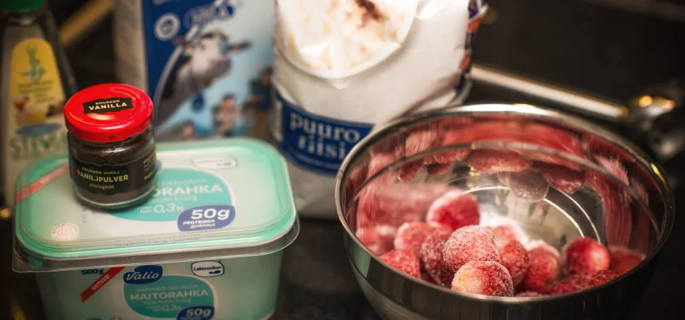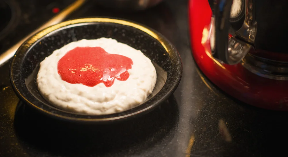 Nauti survos riisifrutin päällä hillona.
