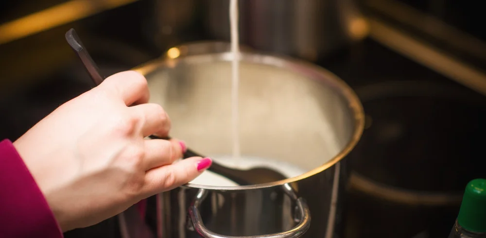 Anna hautua rauhassa sekoitellen hellästi ranteella n.30-40 minuuttia. Jäähdytä puuro vaikka kylmässä vedessä, sitä saa hanasta.