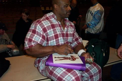 Colemannihan on pirun vahva bodariksi. Ainakin siinä vanhassa videossaan veti maasta 760 lbs x 4 ja 800 lbs x 2 (thx SUBSTNCE). Painaa muistaakseni jotain 120kg kisoissa ja off-seasonil 145kg, ja pituutta 183cm. Rasvaprossast ei mitään hajua.