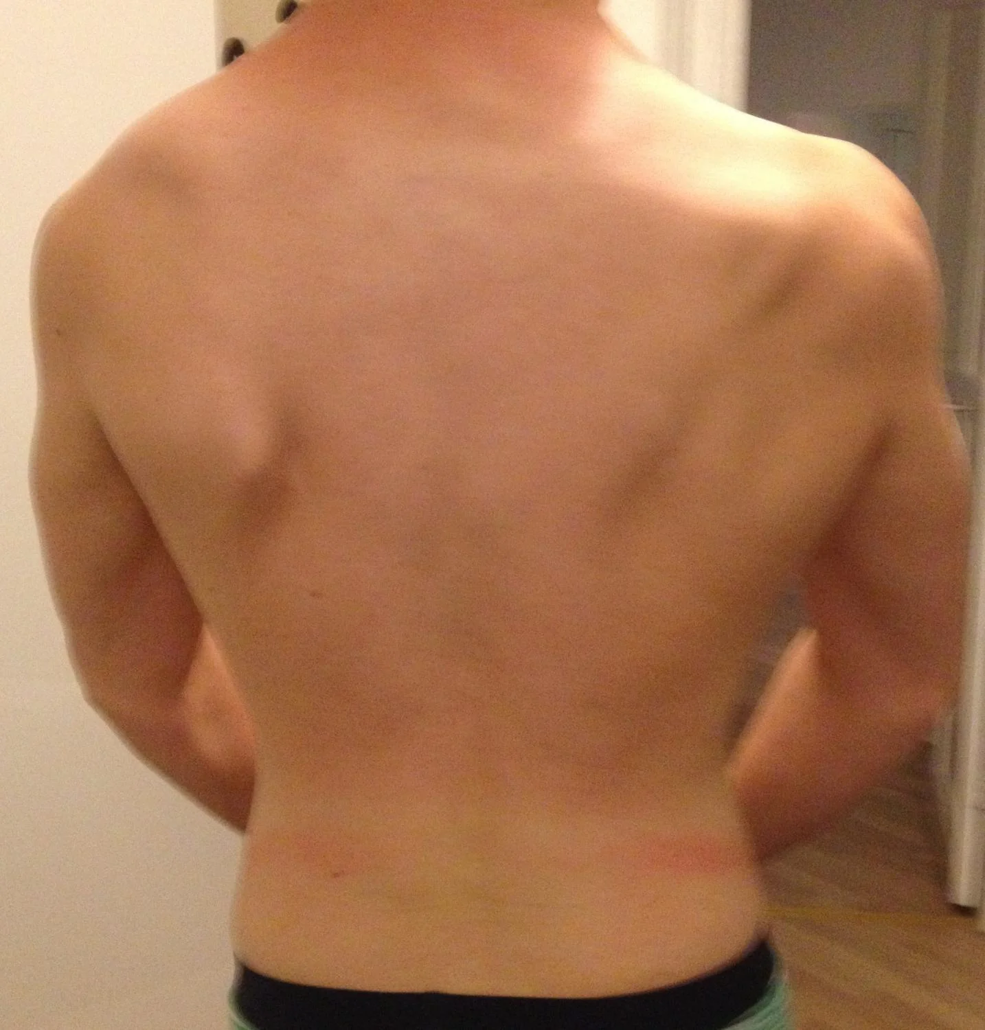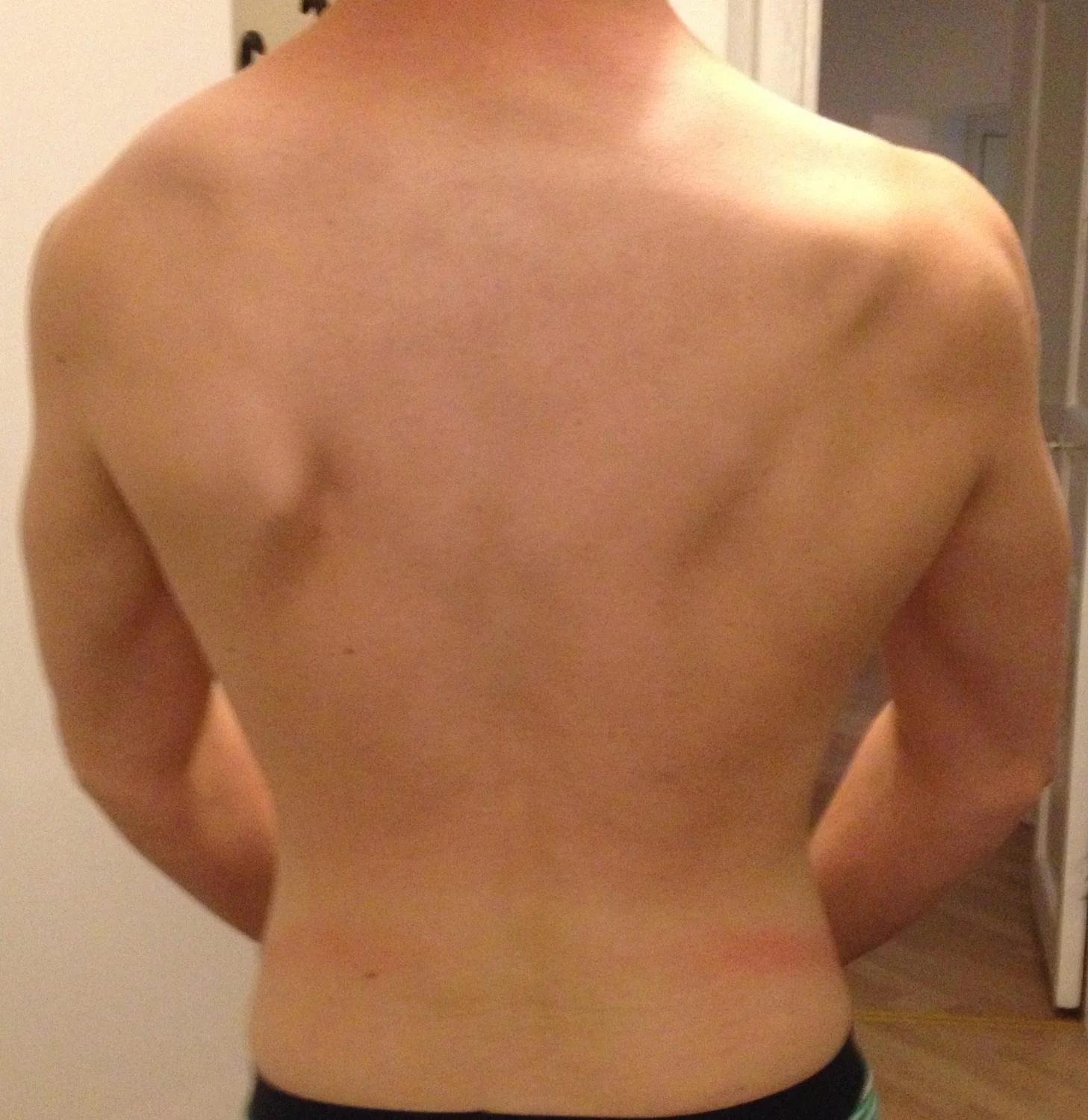 Joo no ei sen tartte välttämättä miltään tuntua, mutta kyllä se silti siellä voi olla. Itellä ei meinannu vasen lapa aueta kunnolla ja tuo huomattiin vasta, kun kaveri otti kuvaa selästä... Sieltä lapojen alta on niin perseestä vielä putkirullaillakin, että hieronta on oikeastaan paras vaihtoehto. Tietenkin sieltä kannattaa rullata se, minkä voi ja venytellä trapseja ja latseja.