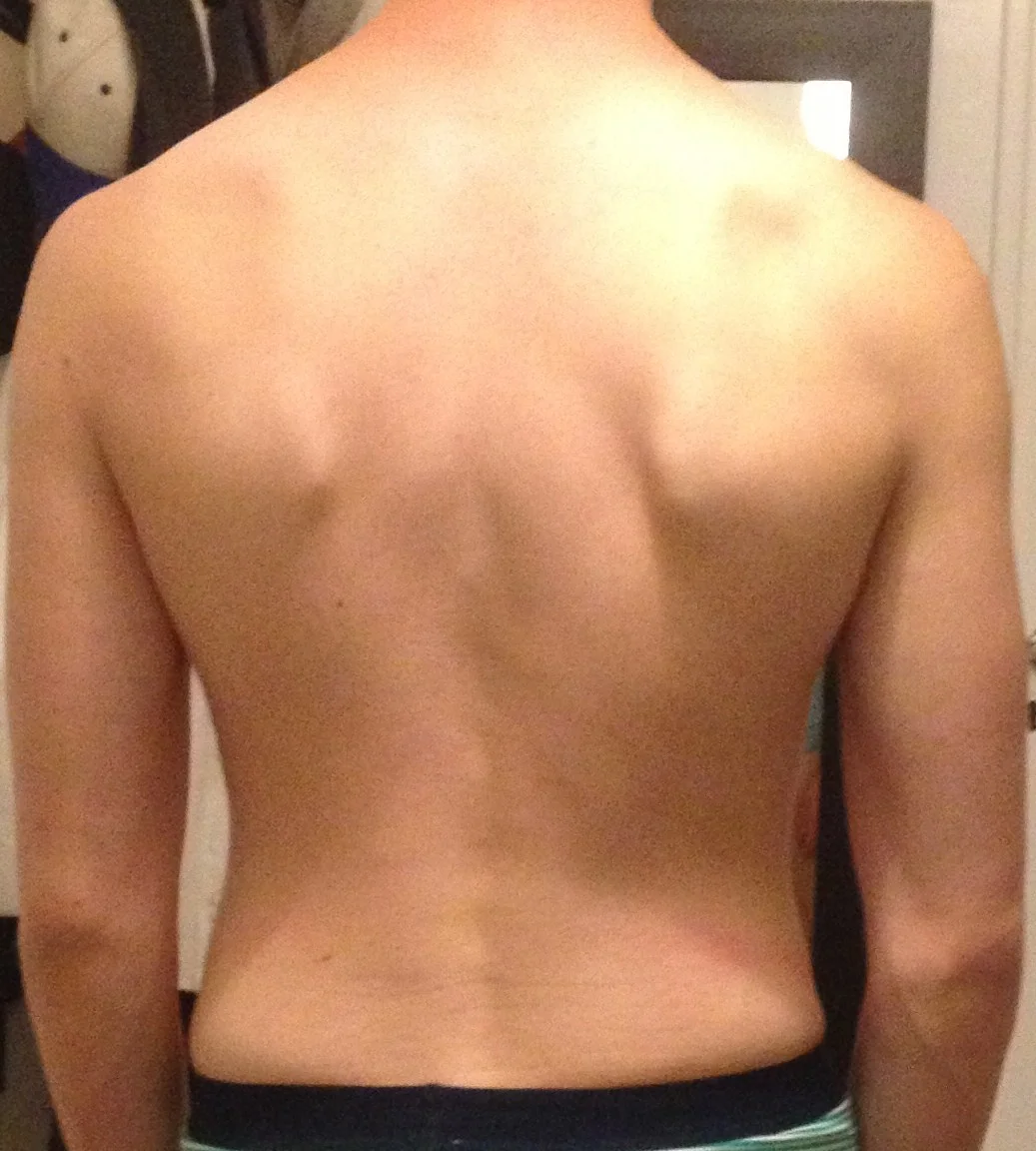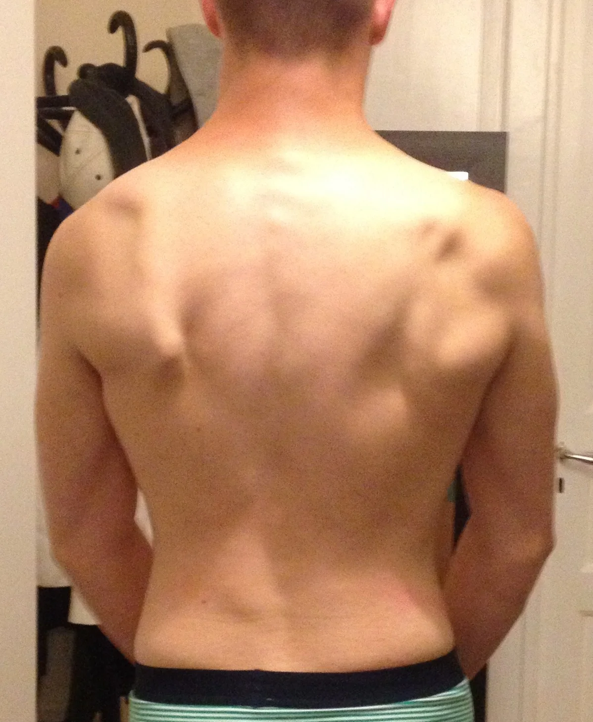 Itsellä täysin sama juttu. Oikea puoli selästä leviää selvästi enemmän. Lisäksi kyseinen vaiva aiheutti minulle myös sen, että oikea olkapää oli eri tasolla kuin vasen, mikä taas aiheutti olkapään vammautumisen, joka on vieläkin arkipäivää. Röngtenissä kuvattiin niin löytyi vasemman puoleista skolioosia ja olkapään ultra- ja röngtenkuvista ei löydetty mitään poikkeavaa, niin kuin niistä ei yleensä mitään löydykkään. Sain sitten lähetteen fyssarille, joka antoi harjoitteita koko kropalle aina jaloista niskaan asti.