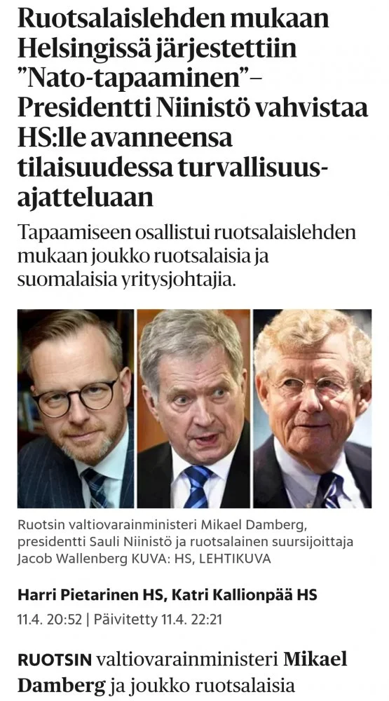 "EXPRESSENIN mukaan kokouksen viesti Ruotsin elinkeinoelämälle on, että Ruotsin tulisi Nato-kysymyksessä peesata Suomea."