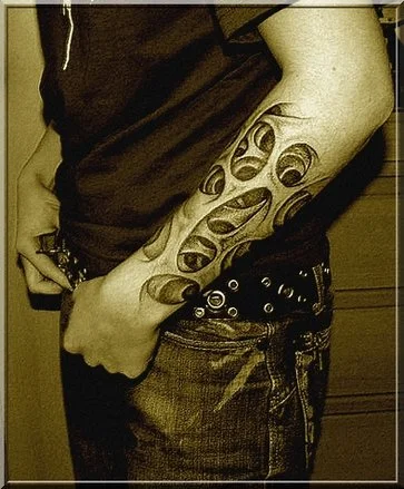 Wanha viesti, mut ei ollu kaiketi vastattu. Mulla on semmonen punamusta olkapäästä kyynerpäähän. Tuohonsuuntaan toteutettuna ja "lihassäikeet" näkyy tavallaan läpi. Googleta skin tear tattoo niin löytyy tommosia.