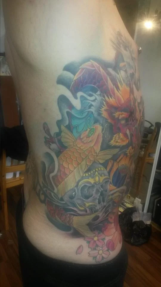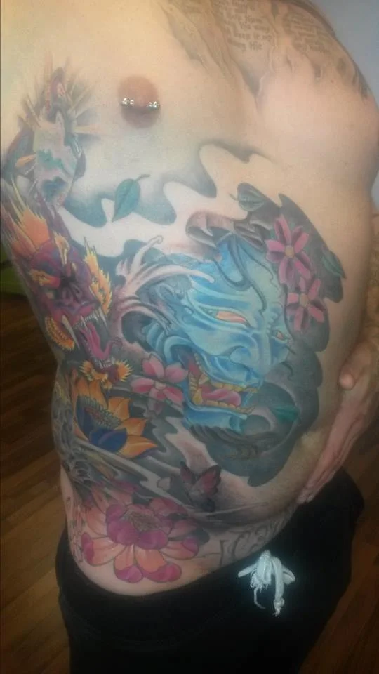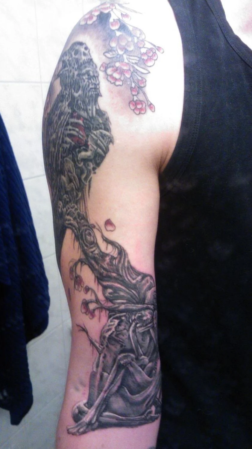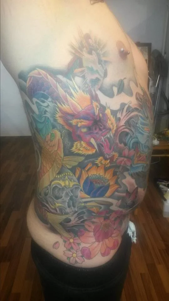 Hmmm..... Reilusti tatuoitu. Ilmeisesti pitäisi olla kroppa täynnä läiskiä, että kuvitelmasi toteutuisi. Kerralla isoa kuvaa.