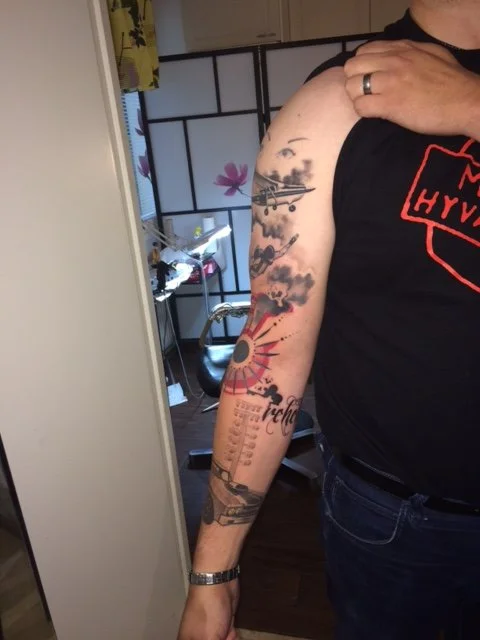Ai että kun on jännittynyt fiilis. Vuoden verran joo kaavaillu omaa koko käden sleeveä, mutta en halunnu ottaa armeijan päälle, ettei vaan kävis mitään komplikaatioita. Tänään varattu joulukuulle ensimmäinen setti kuudesta.