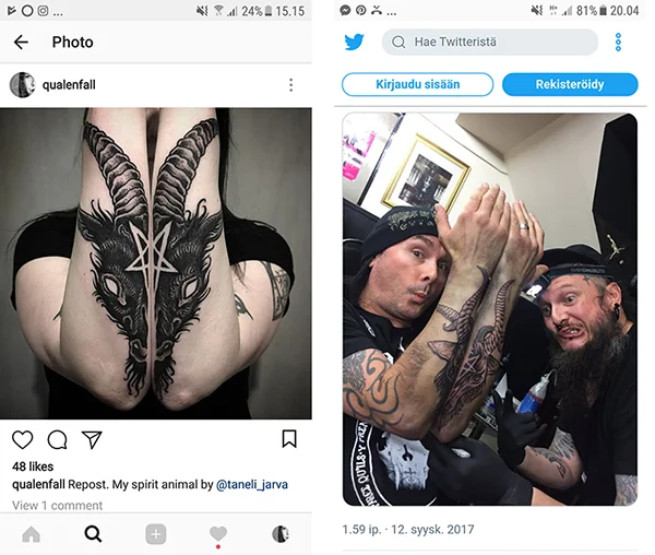 Minä lokakuussa 2016 ja Dani Filth syyskuussa 2017 :hyper: Kyllä mä tiesin että tuota mun tatskaa jaettiin ympäri maailmaa niin pirusti, mutta en ihan tällaista odottanut :sneaky: