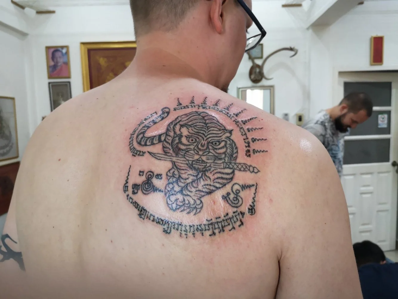 Tekijä on puolalainen mustavalkoiseen tyyliin suuntautunut artisti, jonka löysin sattumalta paikallisilta tatuointimessuilta. Selailin kaverin portfoliota läpi ja tykästyin tyyliin välittömästi. Aloin seurata instagrammissa ja syynäsin jokaisen kuvan läpi moneen kertaan. Tällaista tyyliä minä haluan! Lähetin alkutalvesta hänelle viestiä, missä kerroin haluamani paikan ja näytin kuvan Suomen vaakunasta. Pyysin ottamaan huomioon kaikki tärkeät elementit; kruunu, miekka ja haarniskoitu käsi, mutta muuten hänellä olisi täysin vapaat kädet. Luotto oli aika kova, en nimittäin ollut nähnyt mitään luonnosta kuvasta ennen kuin menin paikan päälle ensimmäistä kertaa (studio ei ole edes samalla paikkakunnalla vaan 140km päässä).