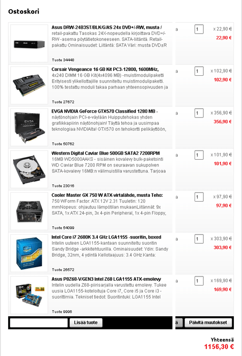 Hmm... Pitääpä miettiä. Jos siis tilaisin samat romppeet mitä tuossa sun kuvassa on, ja vanhasta koneesta näytönohjain, optinen asema ja mahdollisesti kovo, niin olisiko siinä kaikki tarvittava?