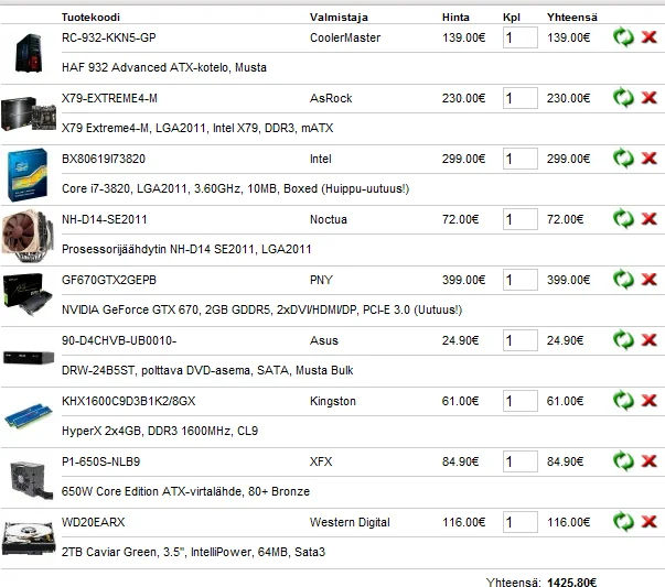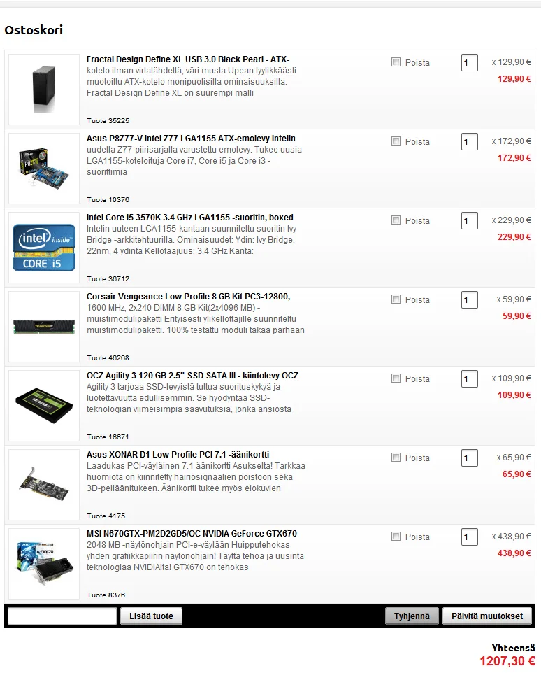 Näihin siis vastauksia peilaten tuota ylempää ostoskoria, niin olisin kiitollinen