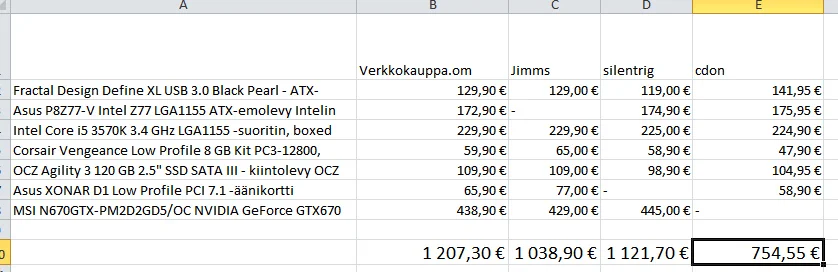 - onko liian kalliit näyttikset ja prossu?