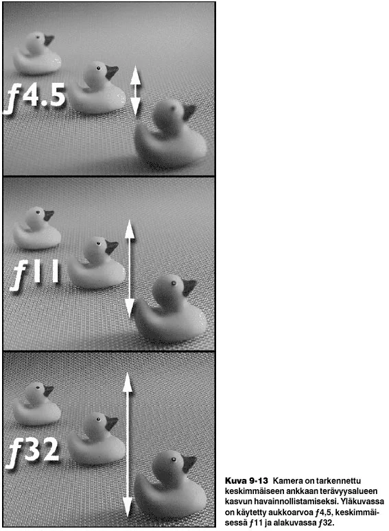 Tässä on hyvin esitetty tuo aukon (F-arvon) muutoksen vaikutus syvyysterävyyteen.