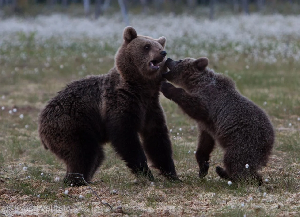 Toivottavasti mullakin on samanlainen onni karhujen kanssa ku sulla.Meetkö mille kojulle? Jos menet sinne mettäkoppiin niin voin kertoa että tuuria ei tarvita siihen että karhuja näkee, olivat saaneet kuvata koko yön. Suolla, missä me oltiin, niin karhuja vähemmän, mutta silti tarpeeksi. Joku kymmenen eri karhua nähtiin ja osa moneen kertaan. Alkuiltana ei mitään, mutta yöllä alko tapahtuun. Suolla mun mielestä paremmat taustat kun siellä metässä, tosin suollakin sai metsäkuvia, kun ne kojut oli metsän laidassa Sitten siellä oli vielä joku lampi mikä ois varmasti kaikkein siistein paikka kuvata, mutta siellä ei ilmeisesti läheskään joka kerta näe yhtään nallea.