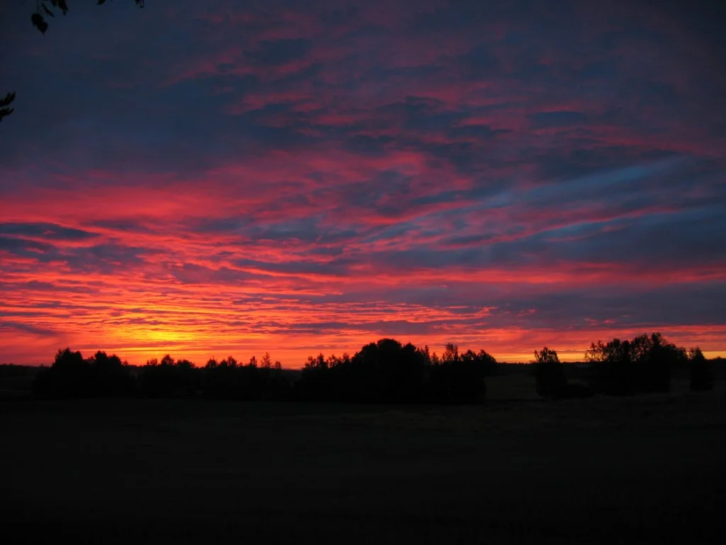 Tässä Hämeenkyröstä napattu kuva n. 5:30 aamulla, kyyhkymettältä. Oli mun mielestä niin komea aamunkoitto että laitoin oikein taustakuvaksi työpöydälle tuon. Tää nyt on vielä tätä kameralla harjoittelua vaan...