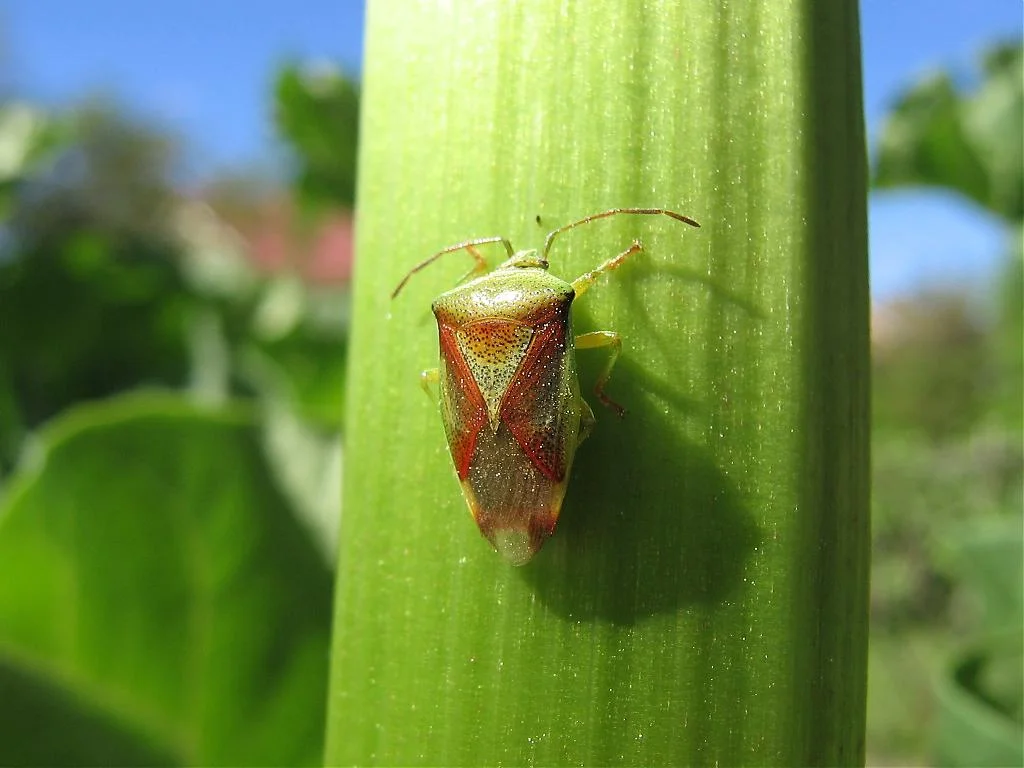 Kuvasin mun 3 Megasella halpis Canonilla makrokuvan jostain hyönteisestä raparperin varrella. Tykkään itse kuvan väreistä.