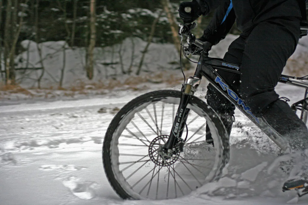 Pyöräilyä lumessa kuten kuvassa näkyy.