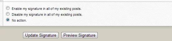 Yhdellä toisella foorumilla, jota käytän, pystyy signaturea tehdessään päivittämään uuden signaturen jokaiseen vanhaan postiin. Löytyykö pakkotoistosta tällainen option (eli enkö löytänyt sitä), vai puuttuuko se kokonaan? Jos näin, pystyykö pakkotoiston foorumirakenteeseen lisätä tällaisen "check boksin" osioon signature.